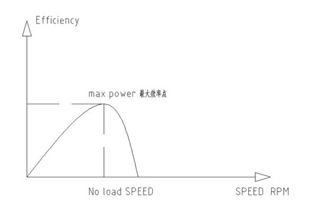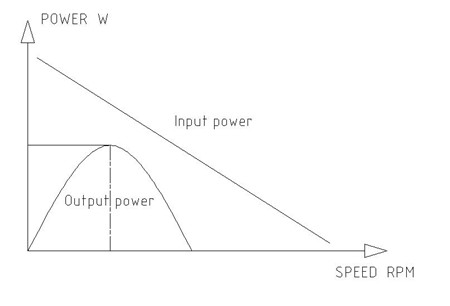 輸出功率和輸入功率隨著轉速的變化而變化,給定的轉速大于空載速度的50%時可獲得最大效率。